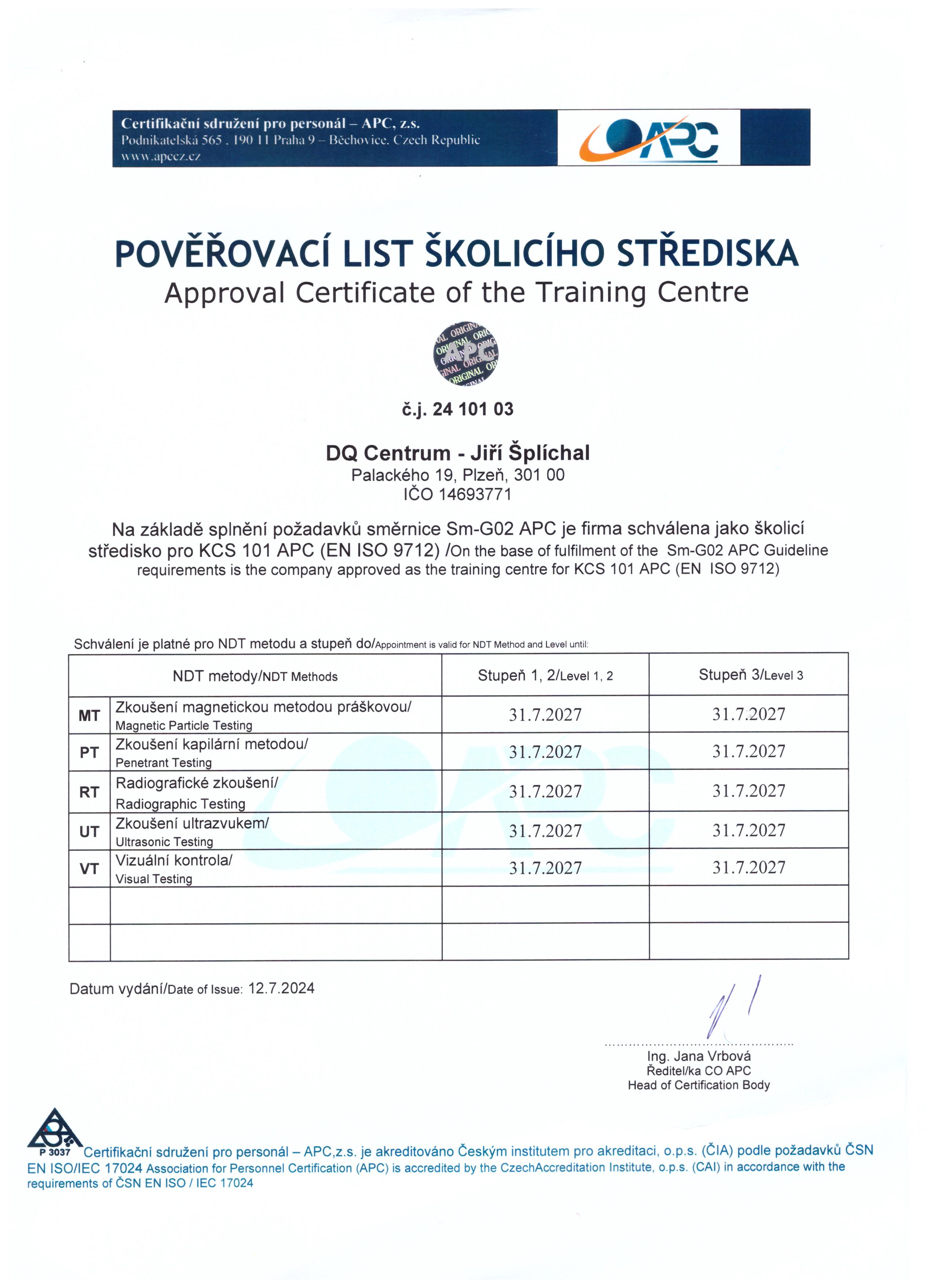 Školící středisko DQ Centrum - Jiří Šplíchal vzniklo v lednu 2003. Toto středisko je provozováno jako živnost fyzickou osobou na základě živnostenského oprávnění. DQ Centrum je od roku 2003 jmenováno CO APC jako školící středisko.